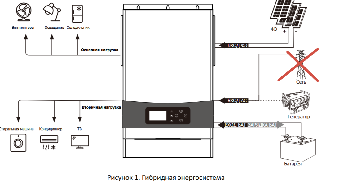 - Инвертор гибридный MUST - MUST PV18-4024 PRO II - 1 фазный, =24/~220 В 4 кВт (1 МРРТ-контроллера, 2 выхода нагрузки (основная+резервируемая), КПД 92%, пиковая (пусковая) нагрузка 8 кВт в течении 5 секунд, рабочее напряжение панелей 90-430 В, старт инвертора с 90 В, возможность (при наличии сети и генератора) сети или генератора (инверторного) . Гарантия производителя - 2 года, зарядный/разрядный ток - до 100 А - 1 шт.